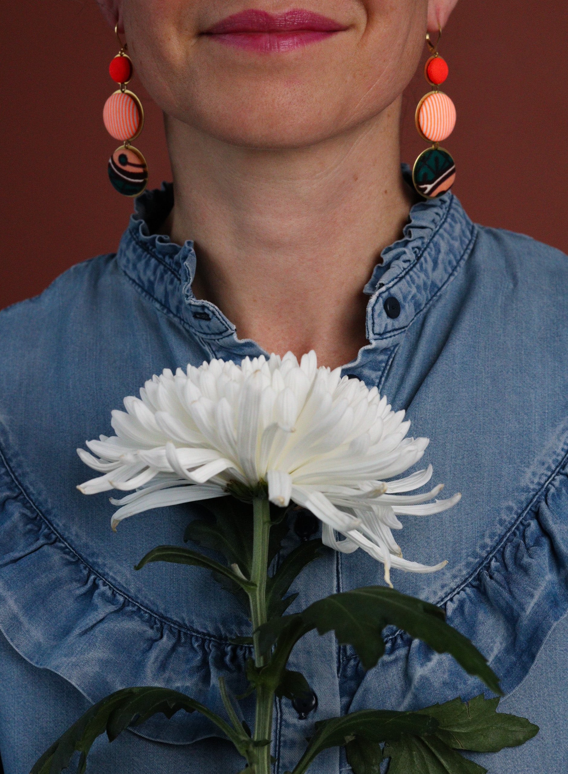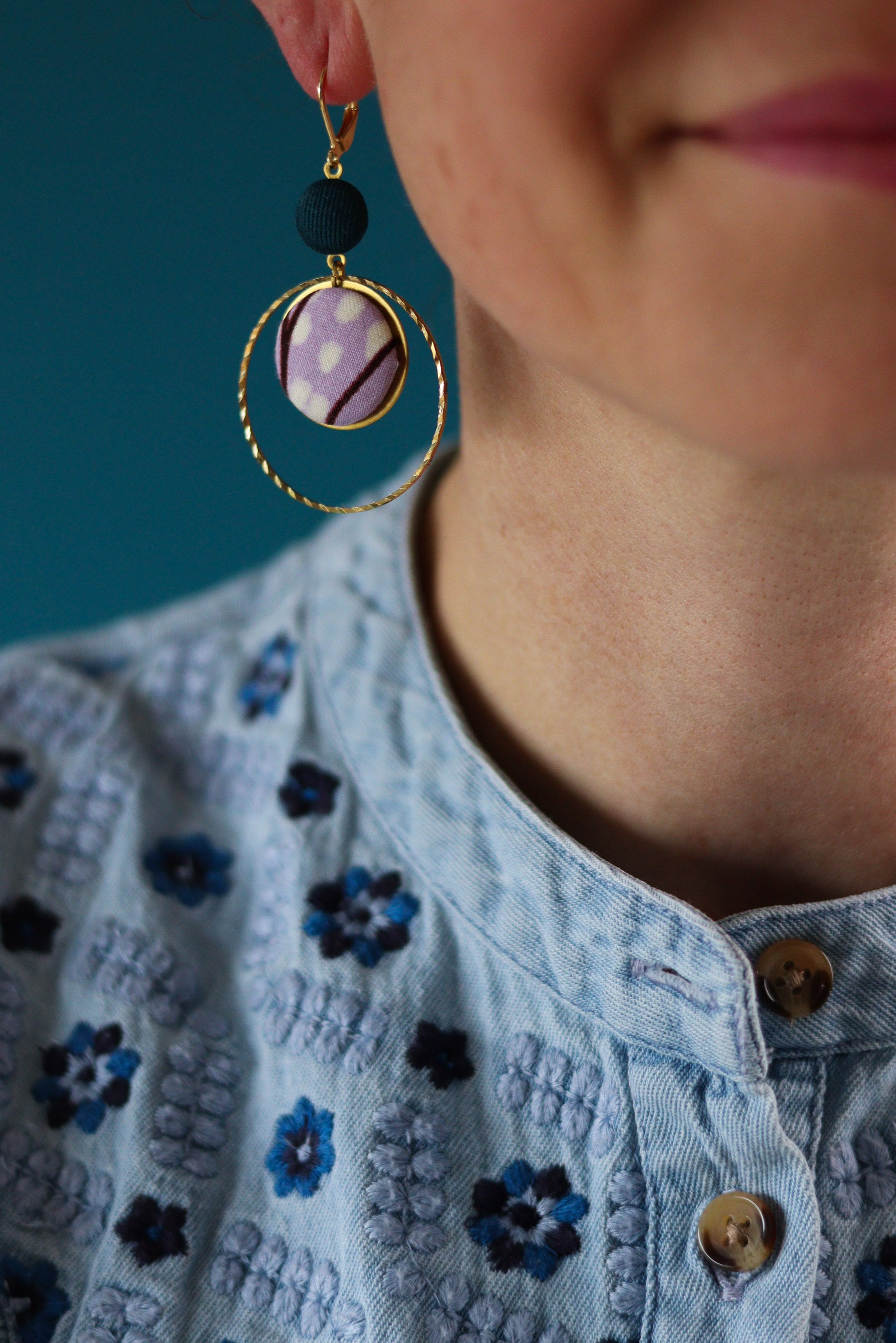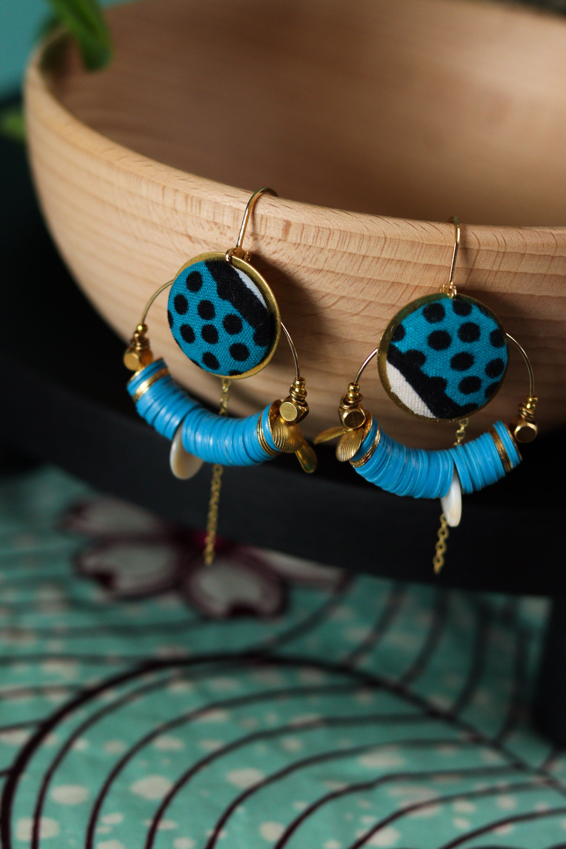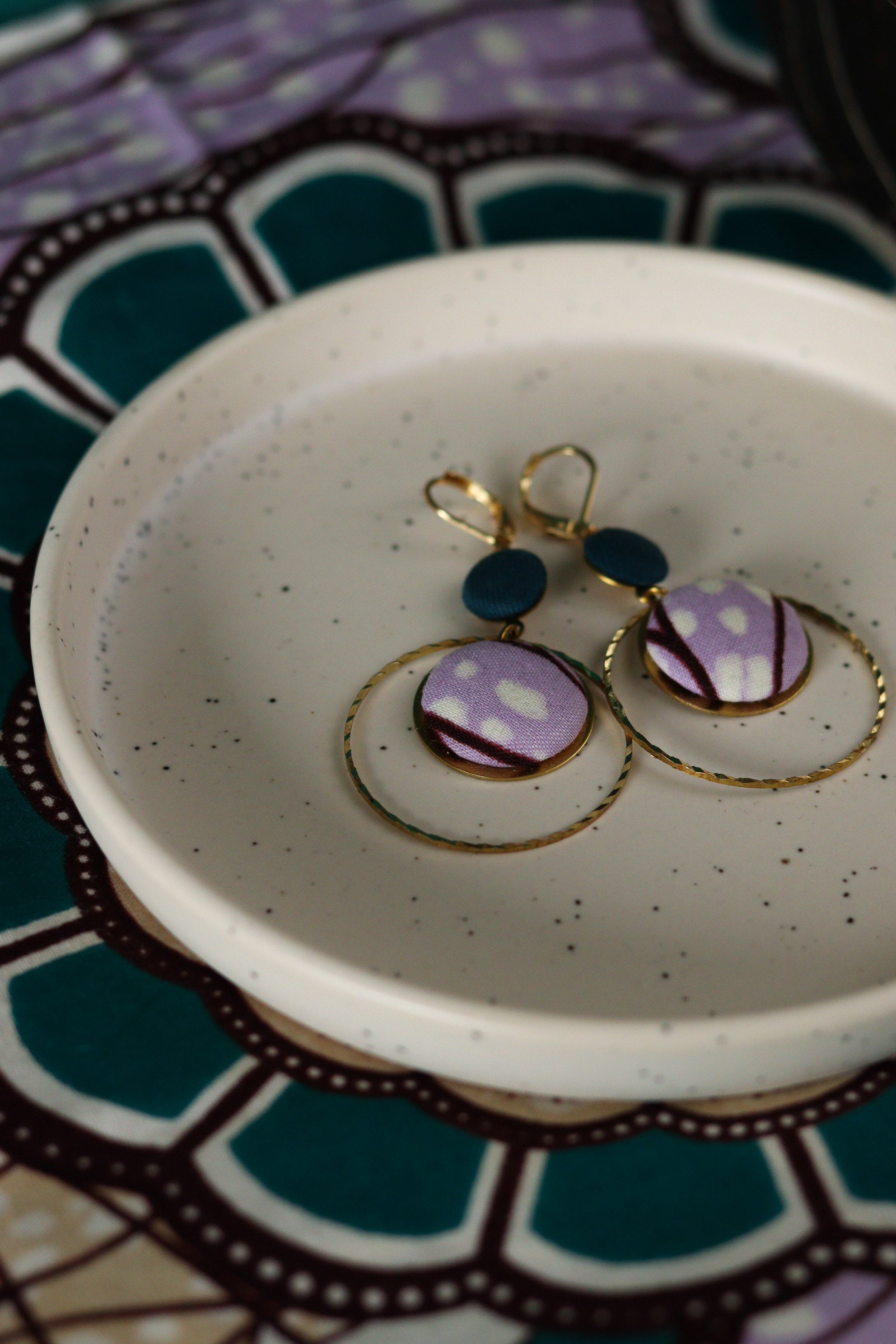 Cette septième collection de boucles d'oreilles africaines en wax a été conçue en collaboration avec Olivia, créatrice de bijoux textiles depuis 2004, sous le nom de Yum Yum Violette. De son travail poétique et de mes chutes de tissus colorées sont nées de jolies pièces uniques à l'âme voyageuse : des créoles mariées à des cuirs colorés, des pièces originales mixant les tissus, des boucles afro-chic à offrir ou à collectionner !