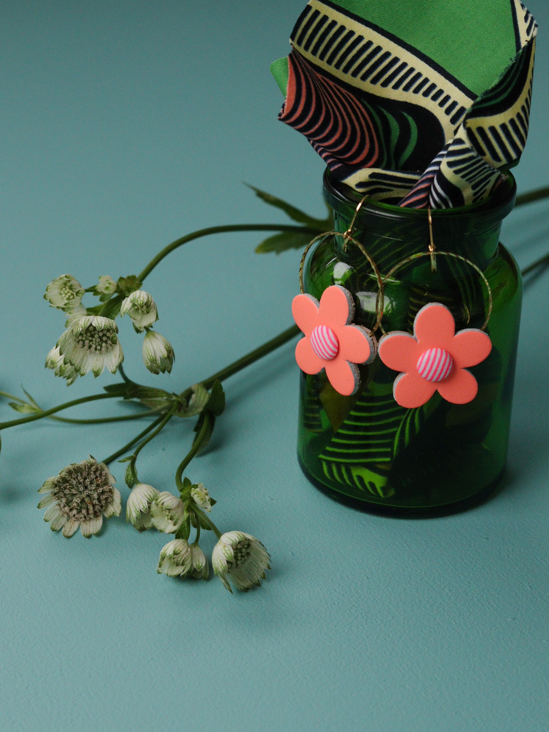En recherche constante de valorisation de mes chutes de tissus et puisque je rêvais de voir mon style coloré décliné en bijoux, je lui ai proposé de créer une collection de boucles d'oreilles inspiré de nos deux univers. Pour cette sixième collaboration, vous trouverez des pièces uniques, qui j'espère vous plairont autant qu'à moi !