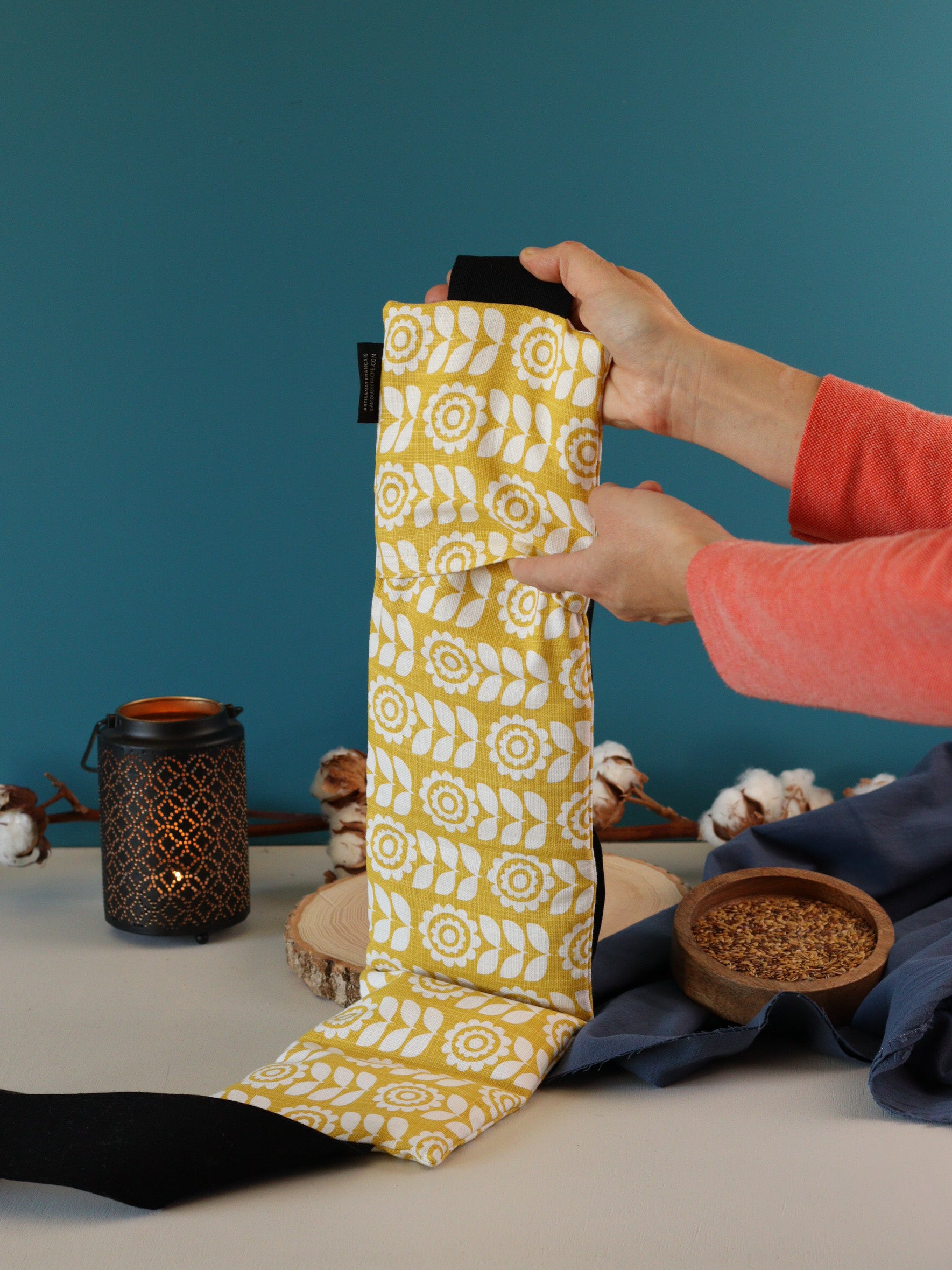 Cette bouillotte sèche en graines de lin bio soulagera tous vos petits maux du quotidien. Idéale pour détendre les muscles, calmer un mal de dos, réchauffer son lit, détendre les cervicales bloquées, apaiser les règles douloureuses, diminuer l'intensité d'une migraine…