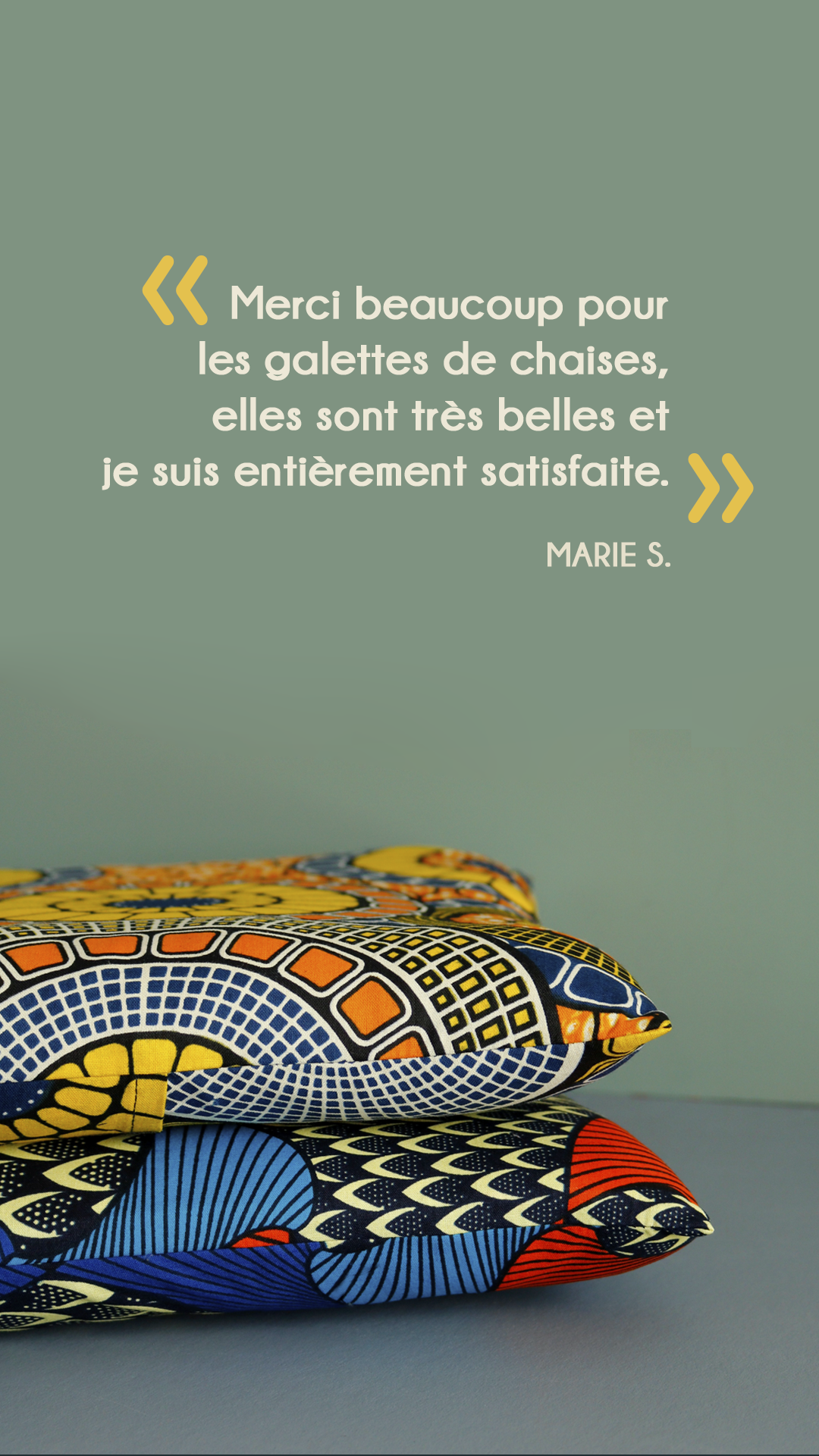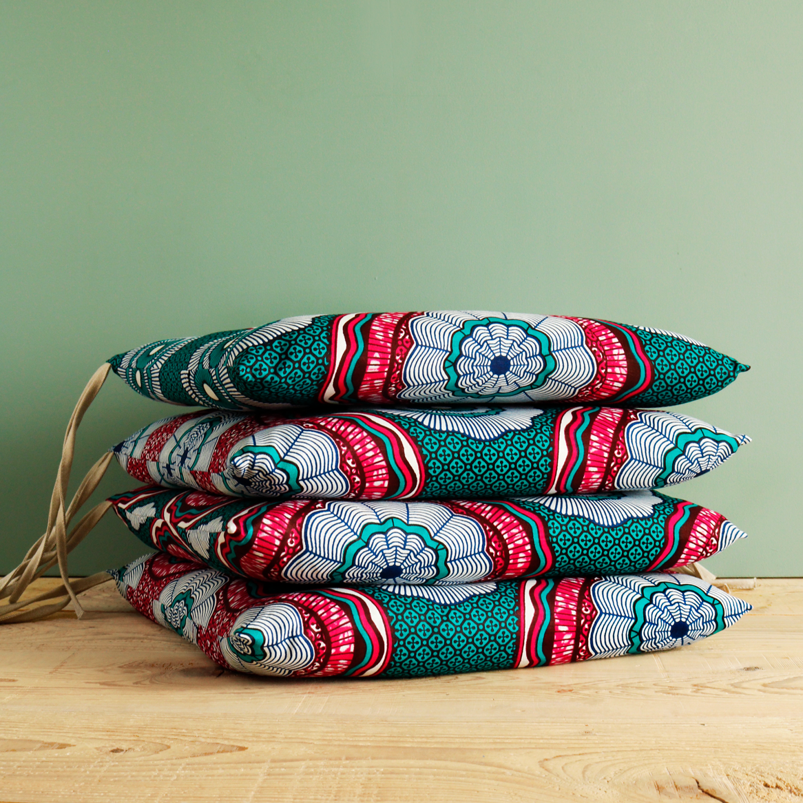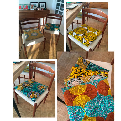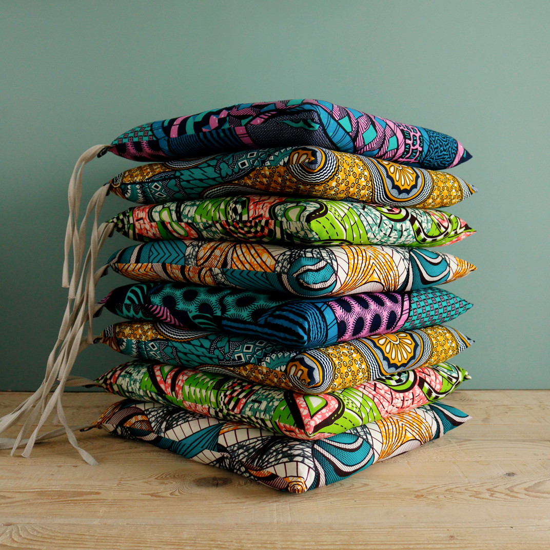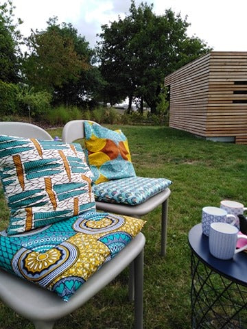 Fabriqués à la demande, les coussins de chaise en wax ou autre imprimé de votre choix habilleront vos assises à votre goût. Vous choisissez, je fabrique pour vous avec une sélection de tissus de qualité que l'on ne voie pas partout. Je peux également vous guider dans vos choix pour créer une ambiance harmonieuse dans votre intérieur avec vos éléments de décoration déjà présents.