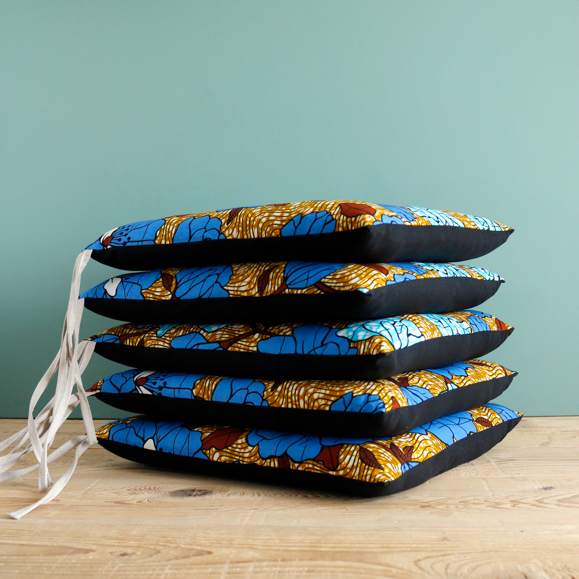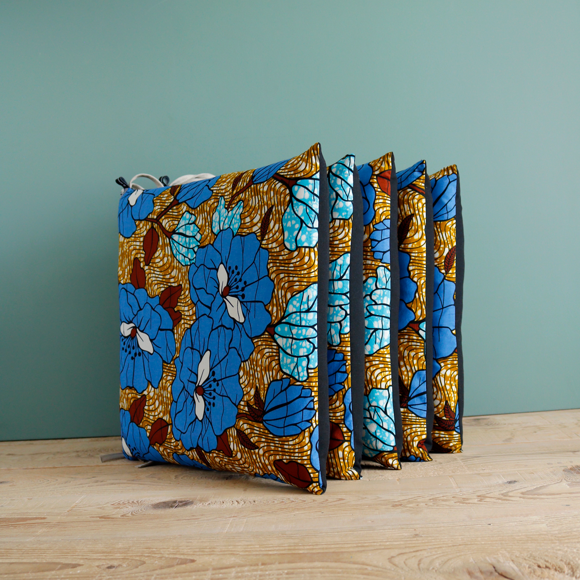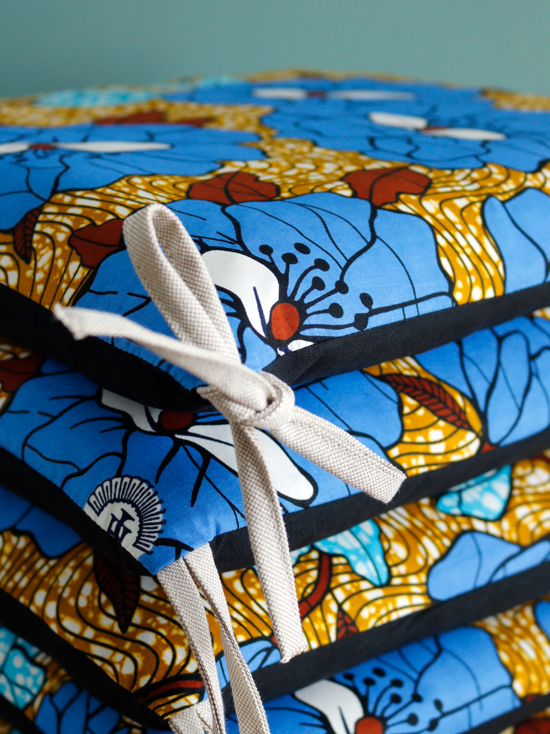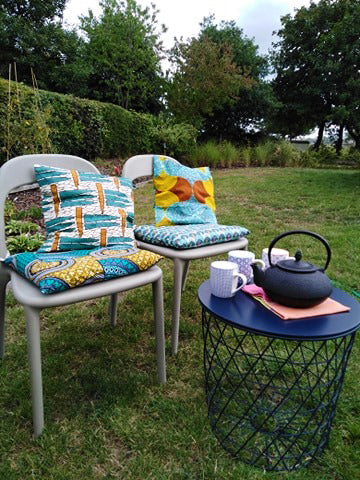 Fabriqués à la demande, les coussins de chaise en wax ou autre imprimé de votre choix habilleront vos assises à votre goût. Vous choisissez, je fabrique pour vous avec une sélection de tissus de qualité que l'on ne voie pas partout. Je peux également vous guider dans vos choix pour créer une ambiance harmonieuse dans votre intérieur avec vos éléments de décoration déjà présents.