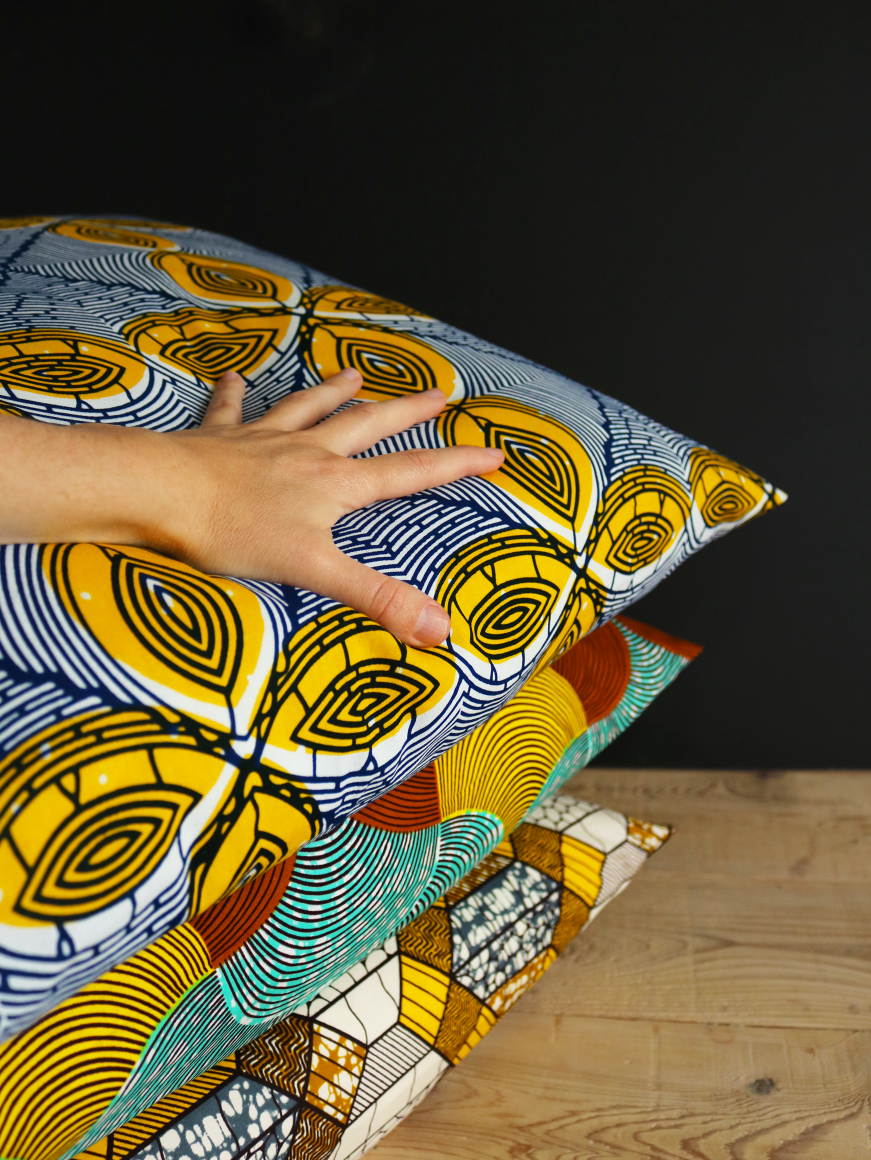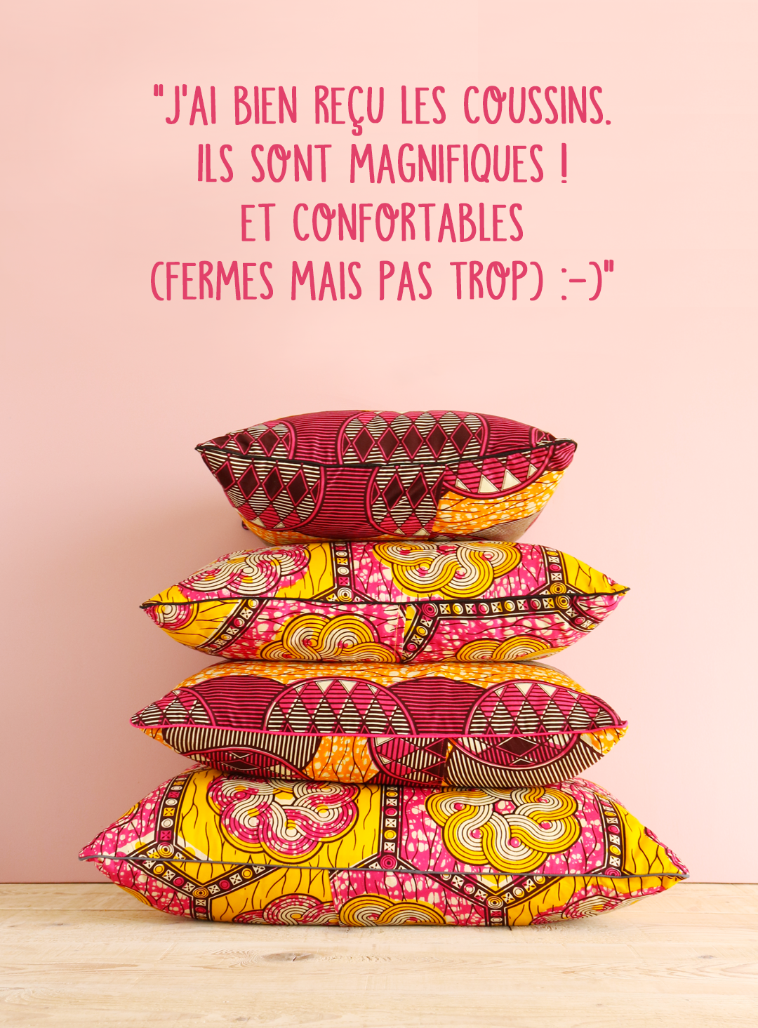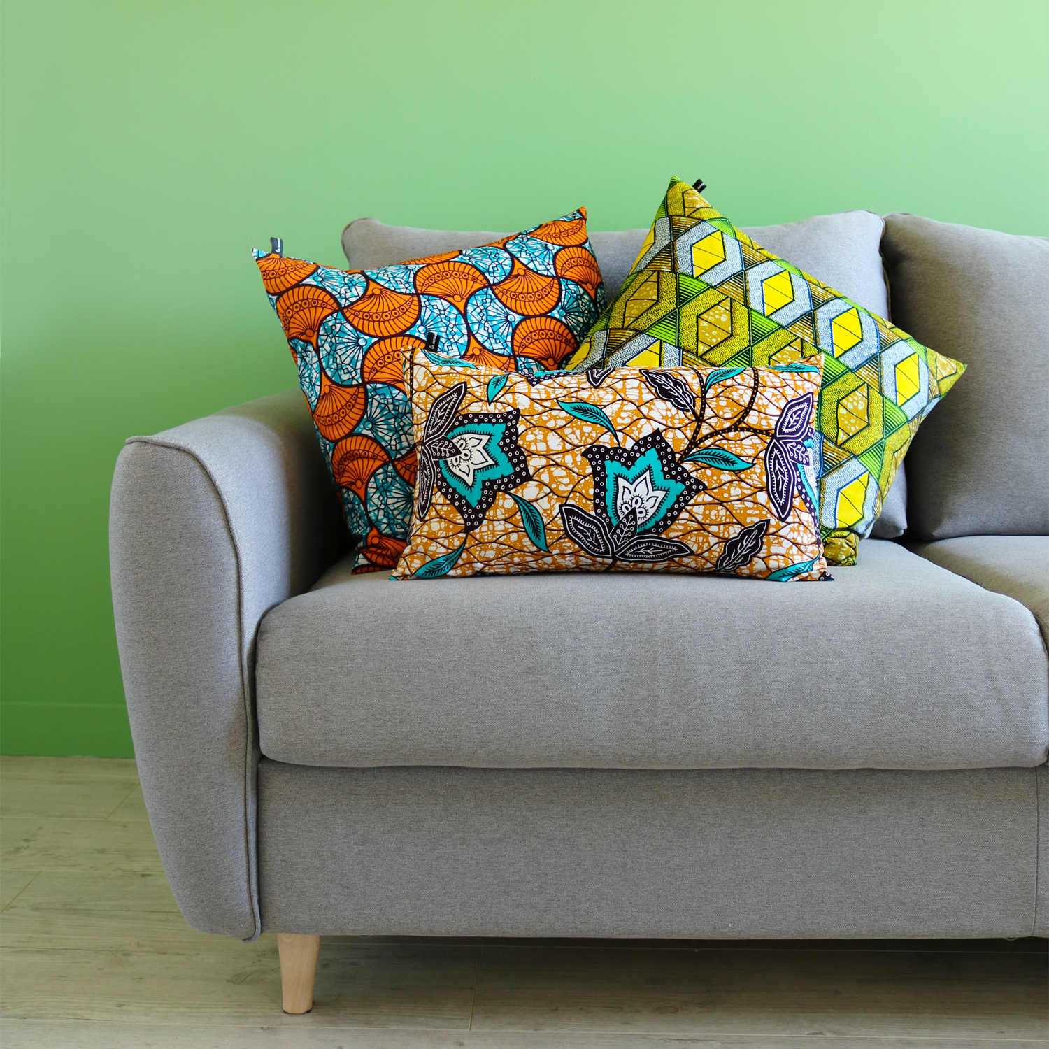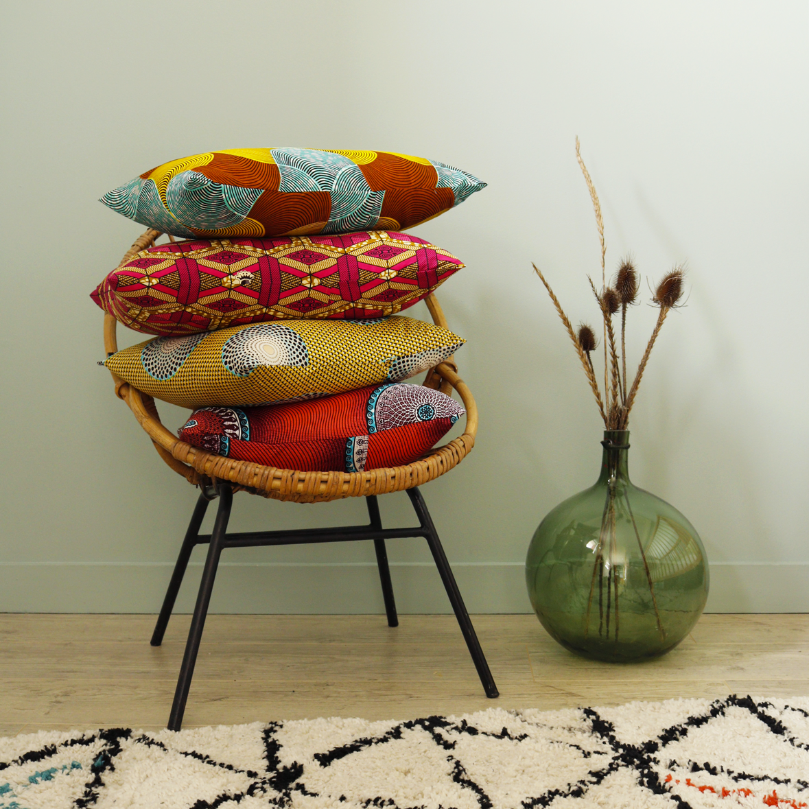 La personnalisation vous donne le choix : la rénovation avec une housse de coussin sur-mesure en tissu africain, à sa dimension ou la confection de coussin africain ou de coussin coloré avec un garnissage made in France. Il ne reste plus qu'à laisser libre court à votre imagination !