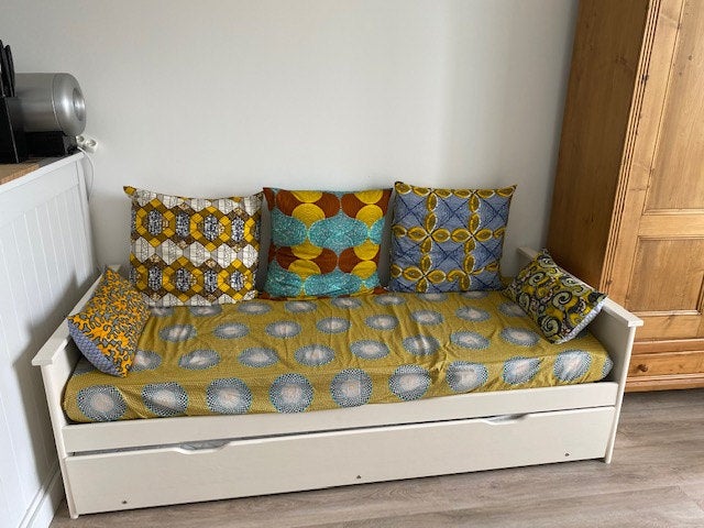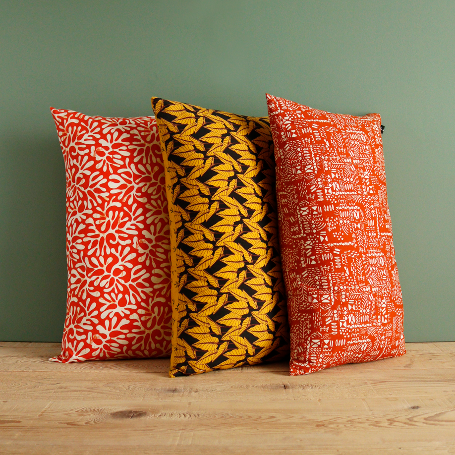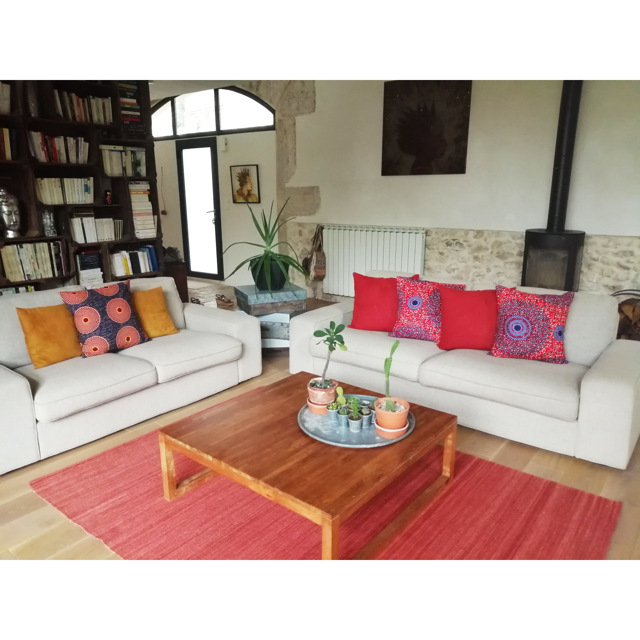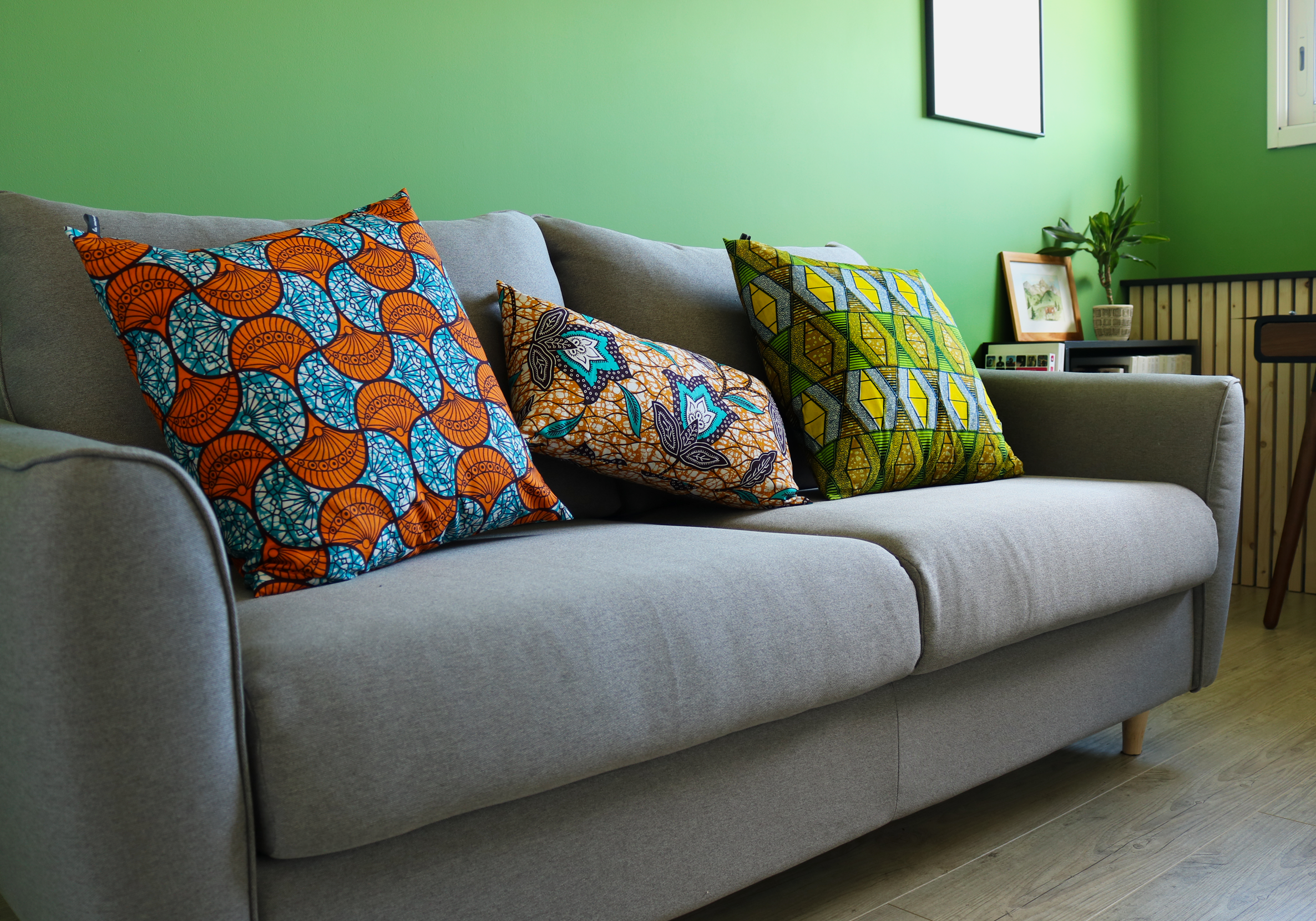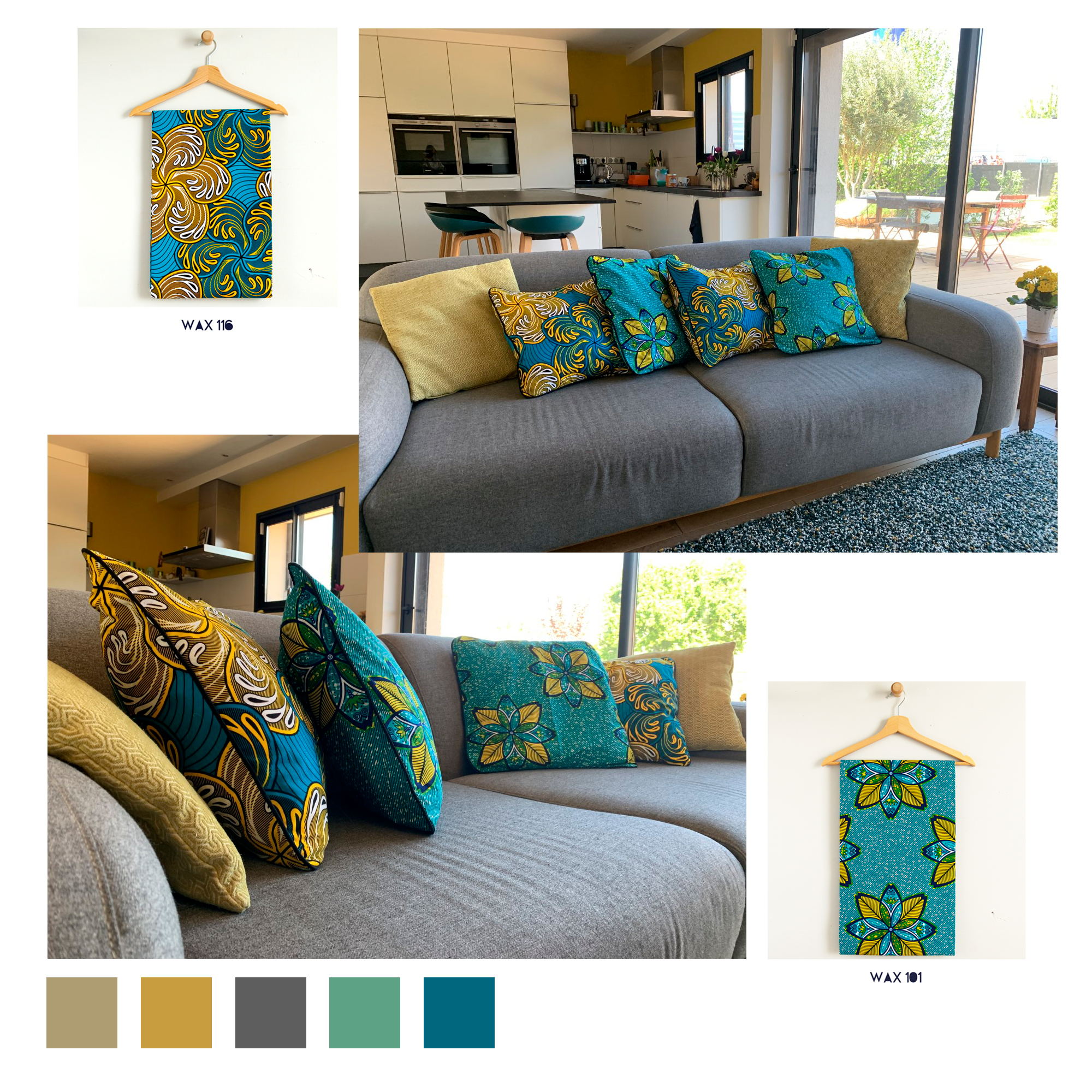 La personnalisation vous donne le choix : la rénovation avec une housse de coussin sur-mesure en tissu africain, à sa dimension ou la confection de coussin africain ou de coussin coloré avec un garnissage made in France. Il ne reste plus qu'à laisser libre court à votre imagination !