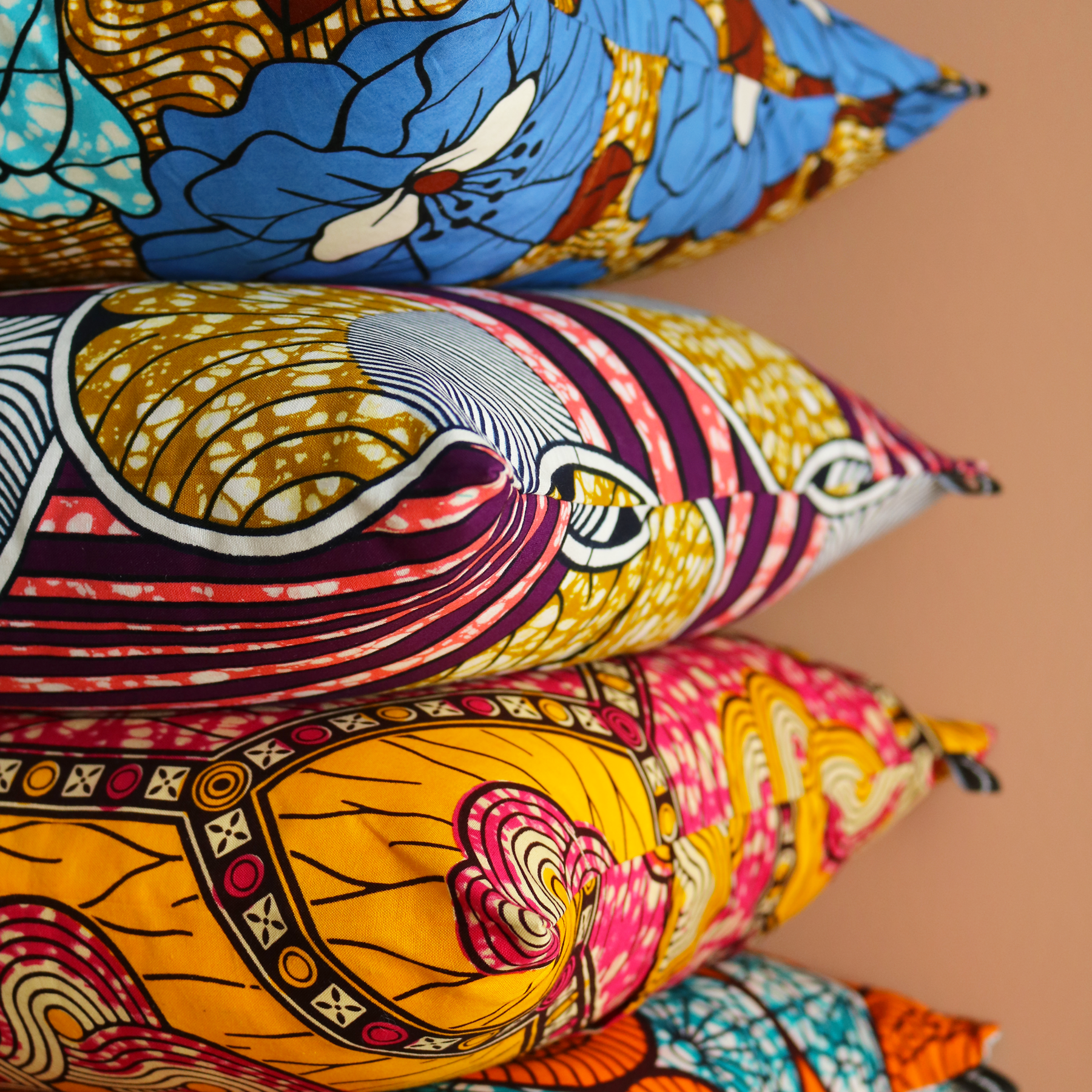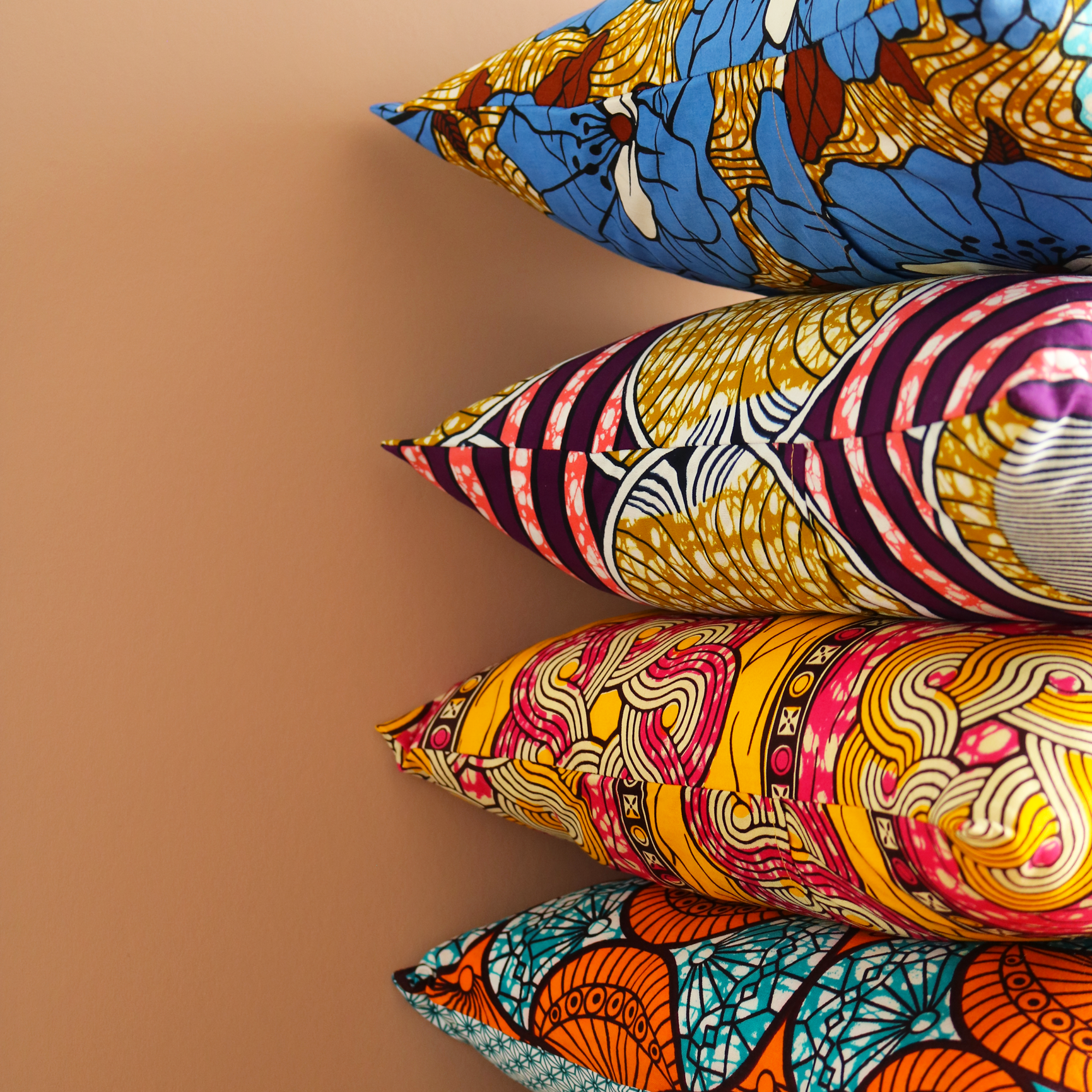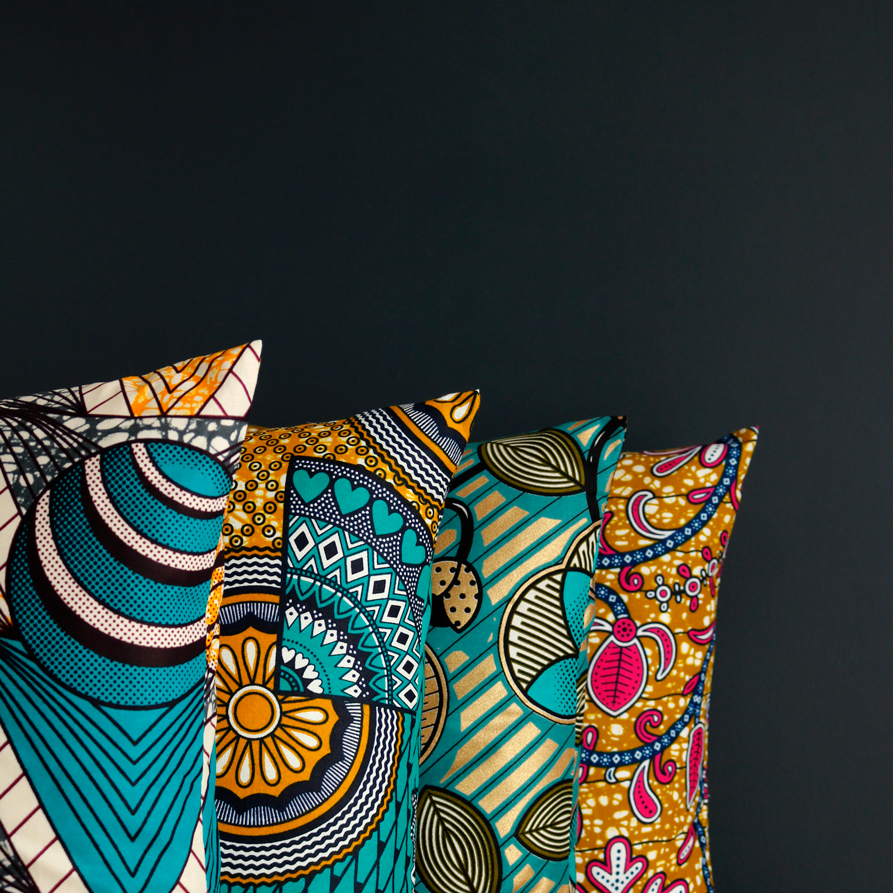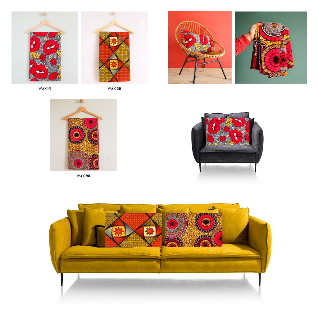 Pour m'adapter à vos besoins et à vos goûts, je vous propose un large choix de tissus pour la confection de vos coussins wax et housses de coussins ethniques sur-mesure.