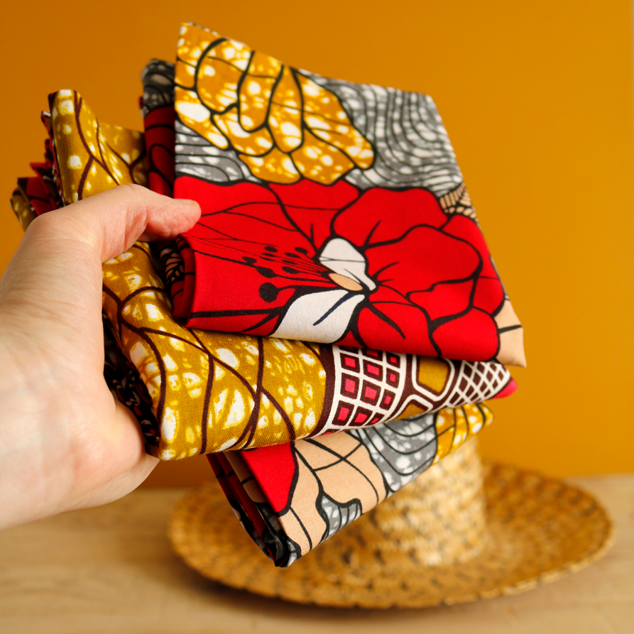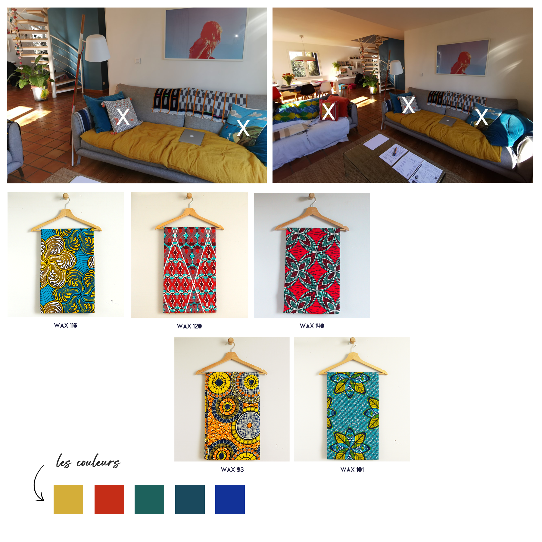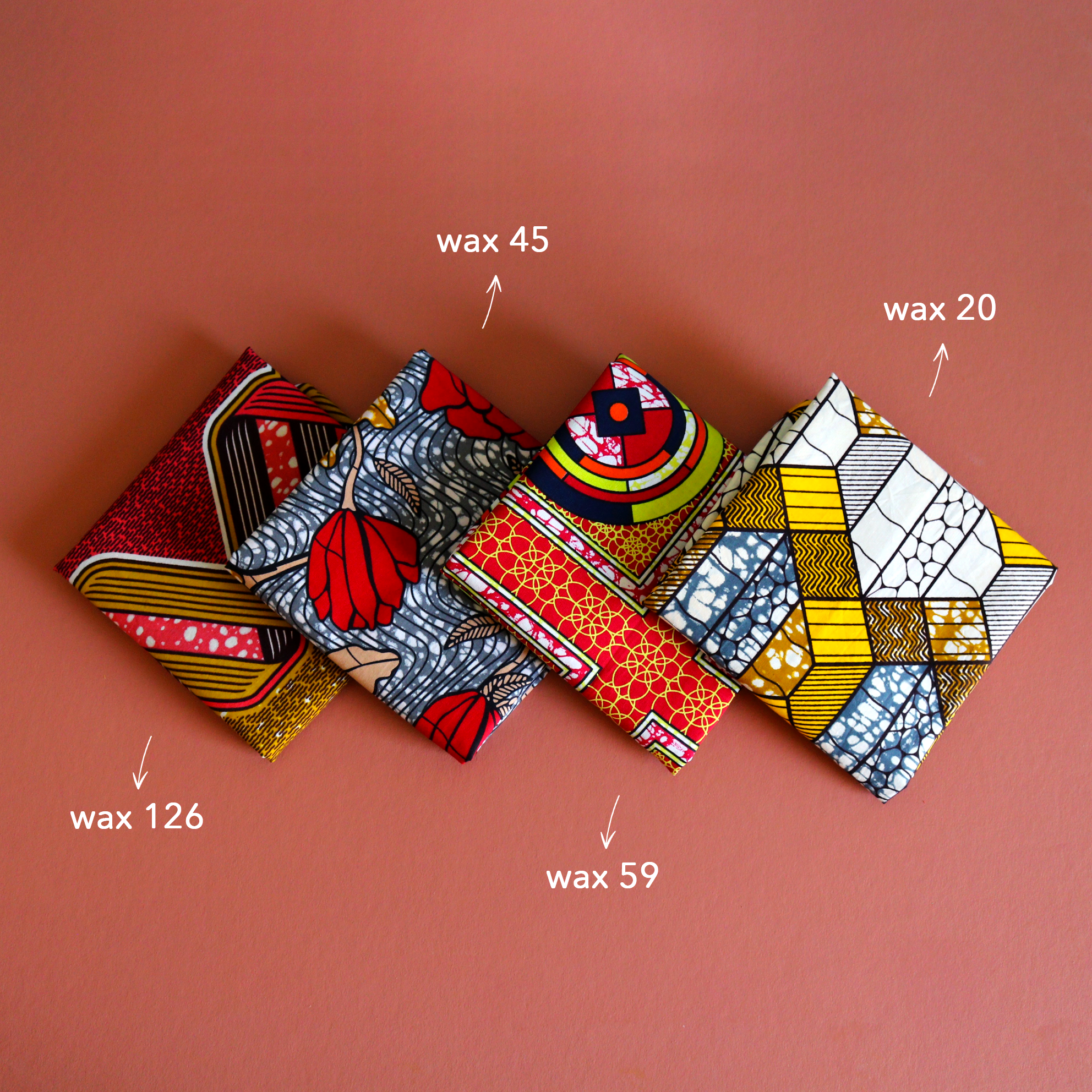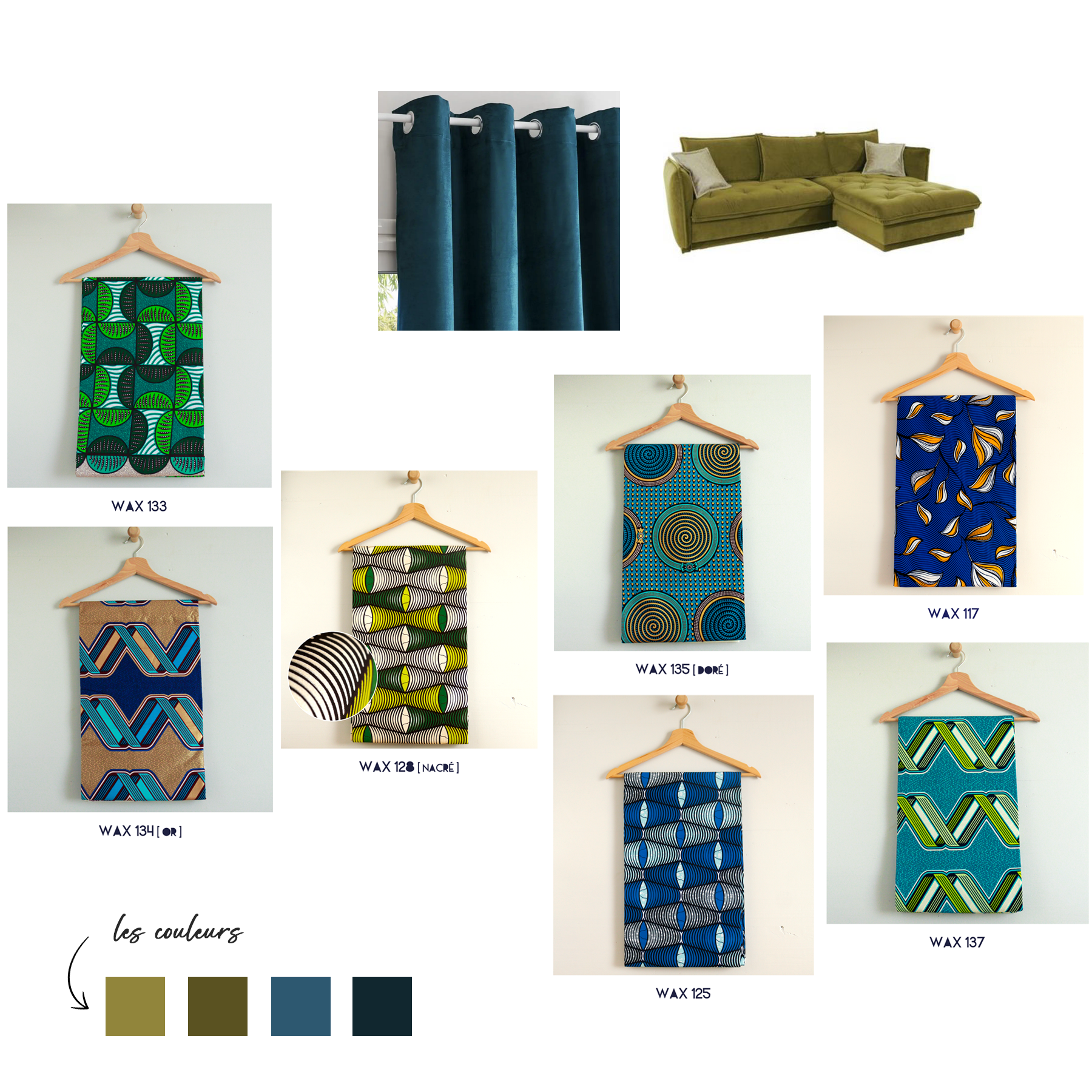 Pour m'adapter à vos besoins et à vos goûts, je vous propose un large choix de tissus pour la confection de vos coussins wax et housses de coussins ethniques sur-mesure.