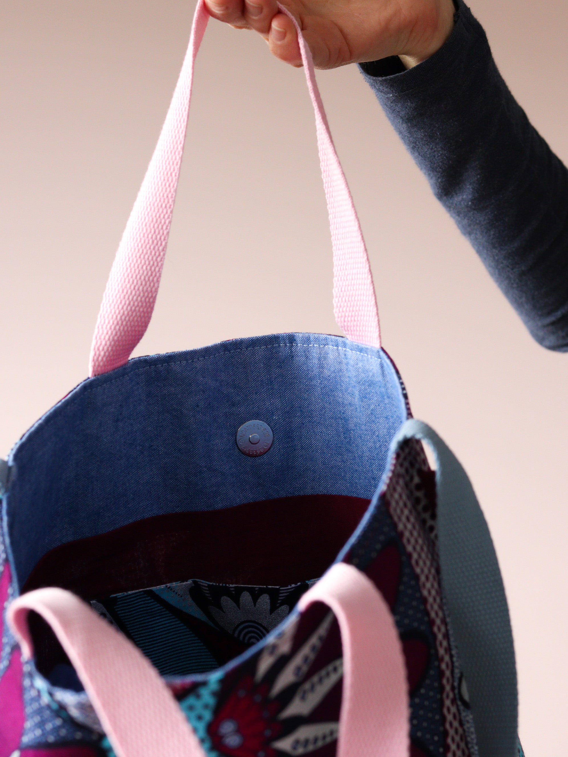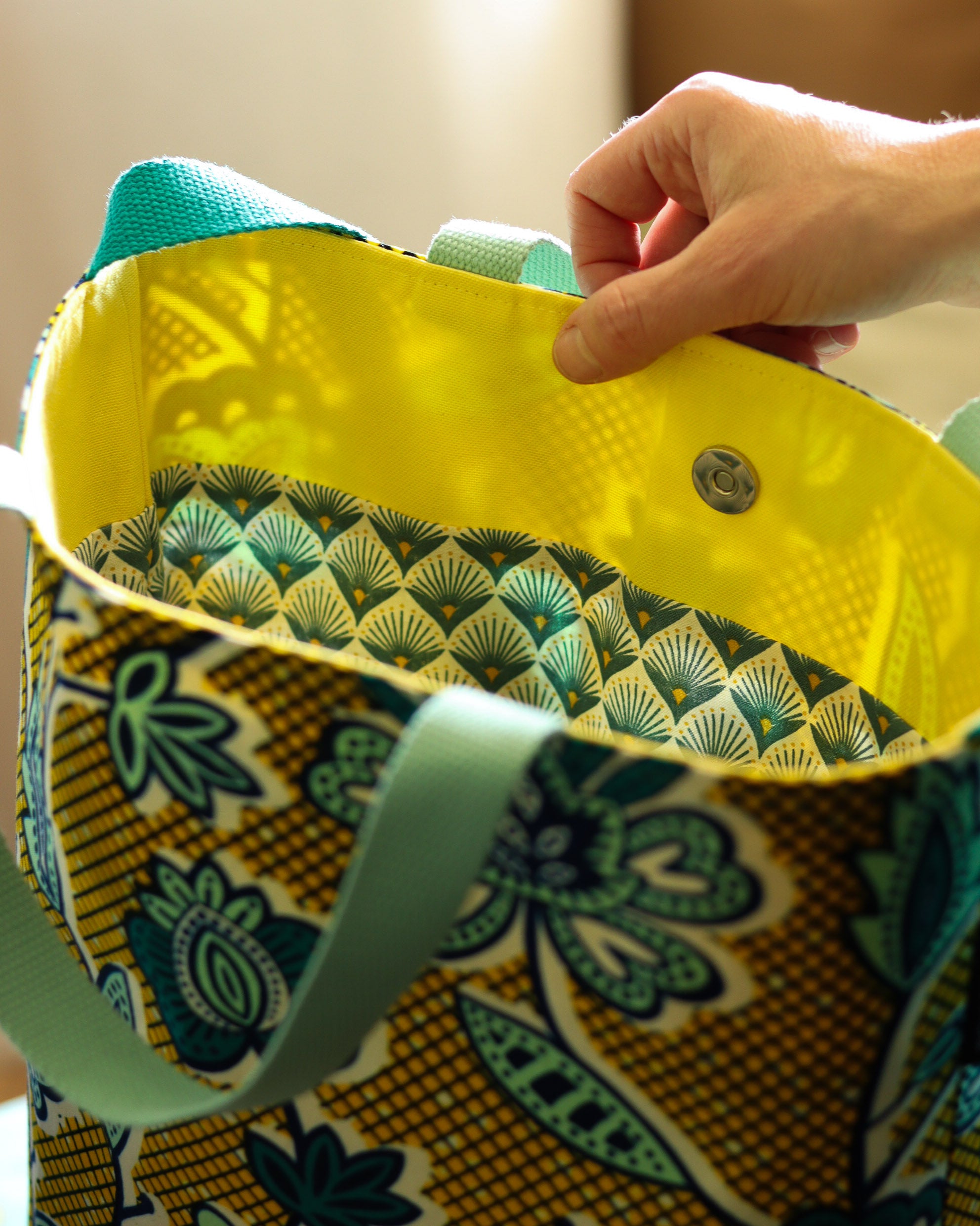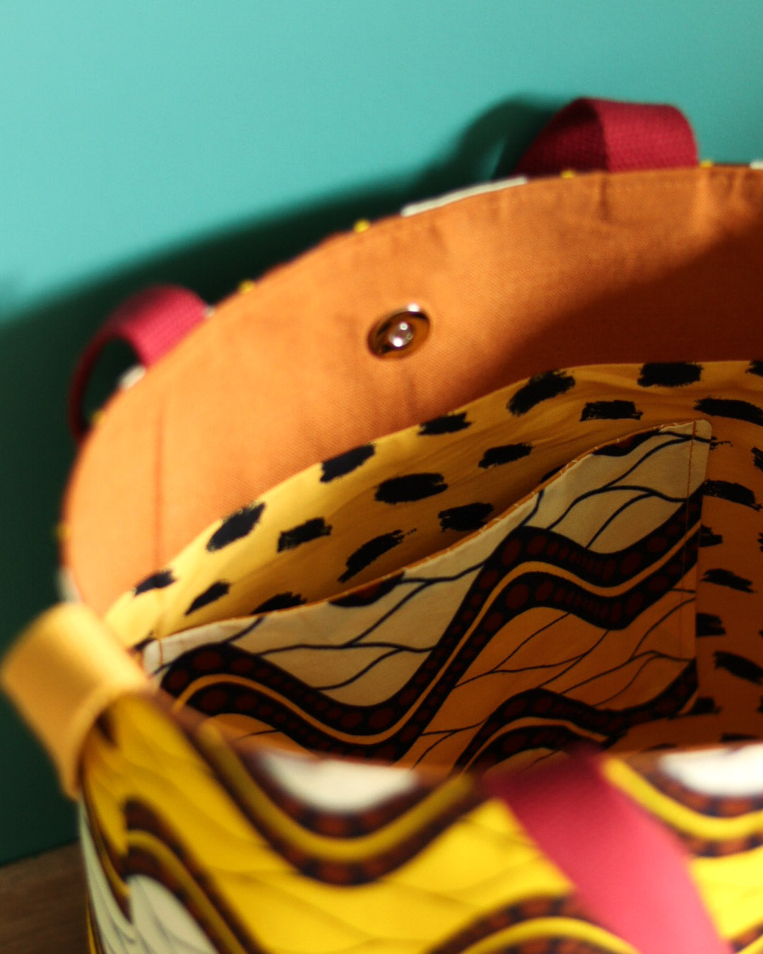 J'ai conçu un sac pratique et durable. Son format est parfait pour emporter vos indispensables, tandis que sa poche intérieure garde à portée de main vos petites affaires. Il se porte à la main ou à l'épaule grâce à ses doubles anses, et son aimant permet une fermeture rapide et facile. Côté solidité, il est pensé pour durer : le wax est rigidifié pour plus de tenue et les coutures sont renforcées.