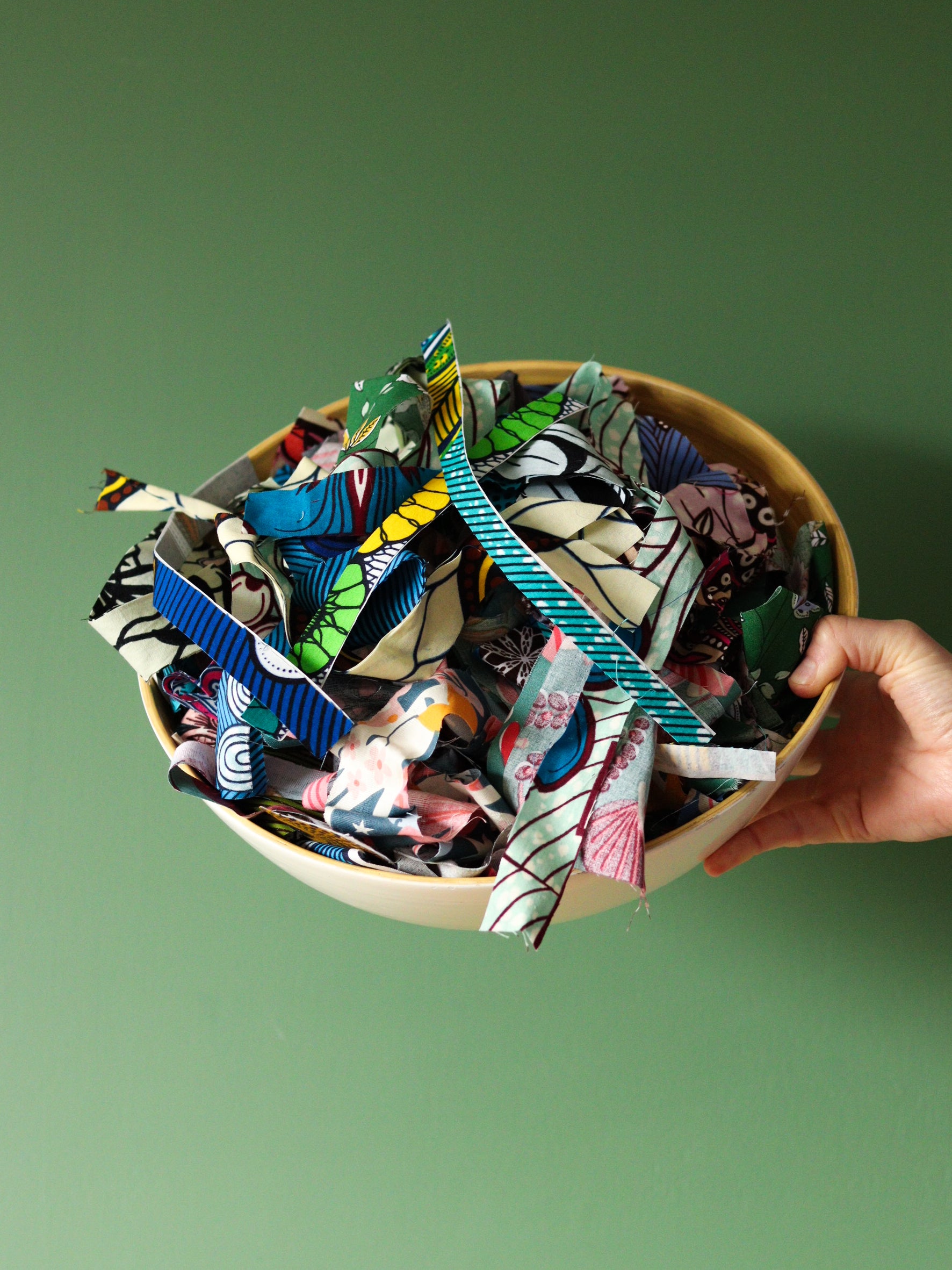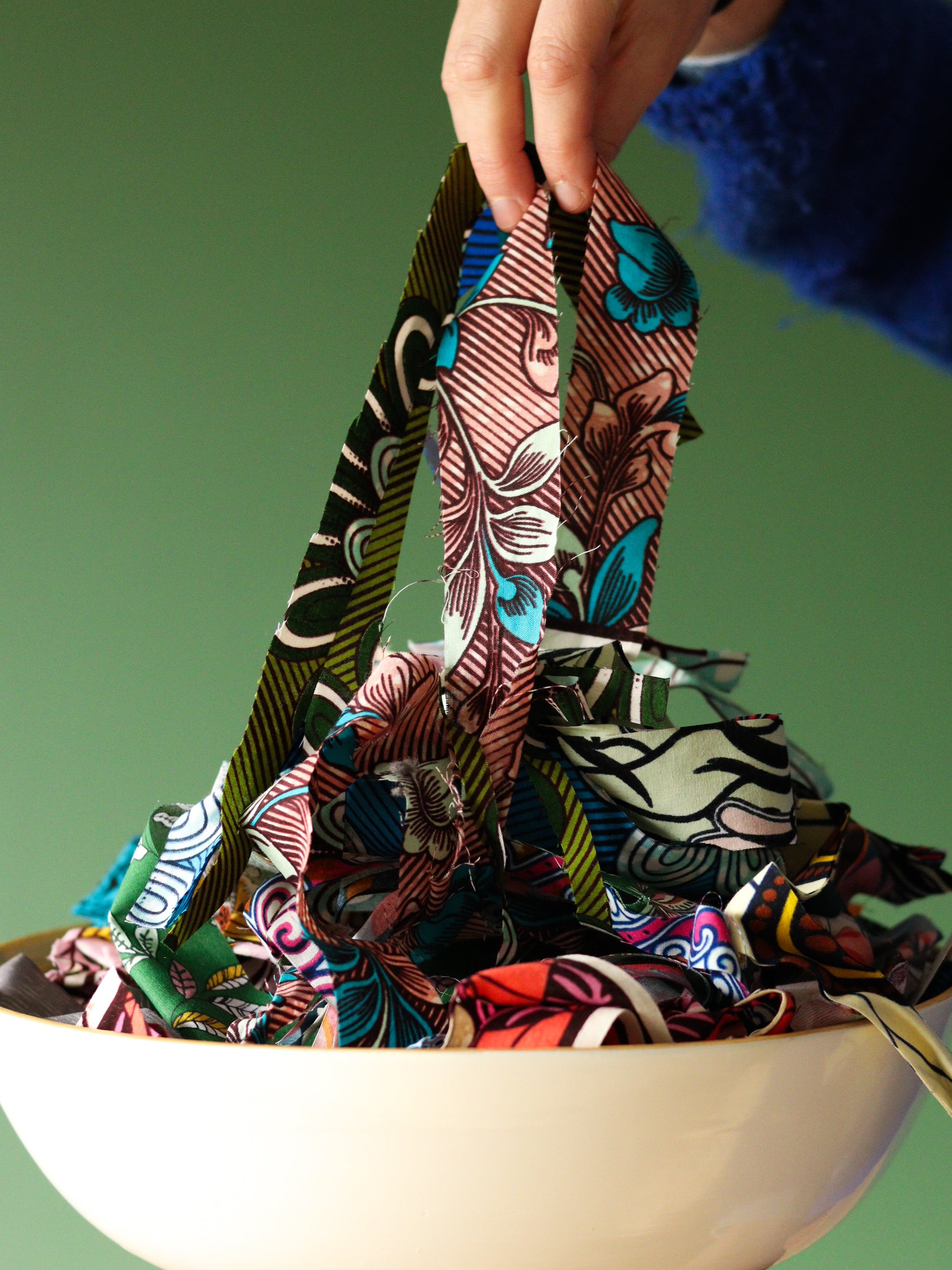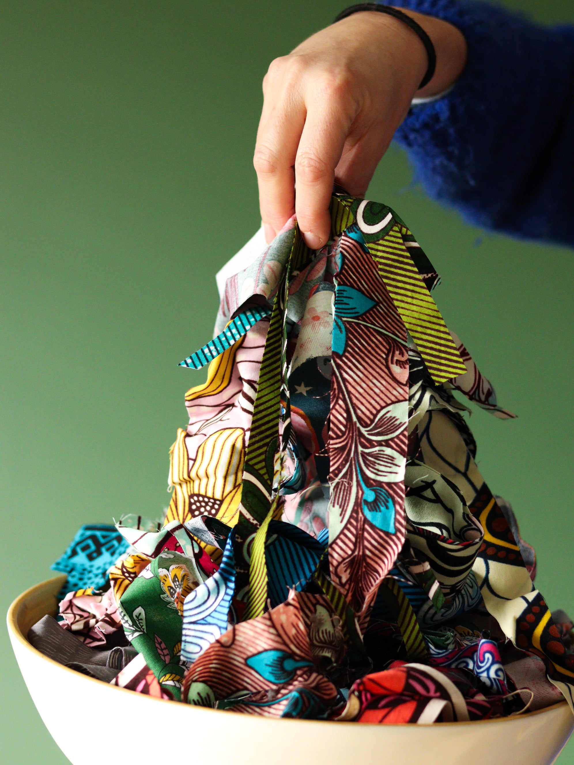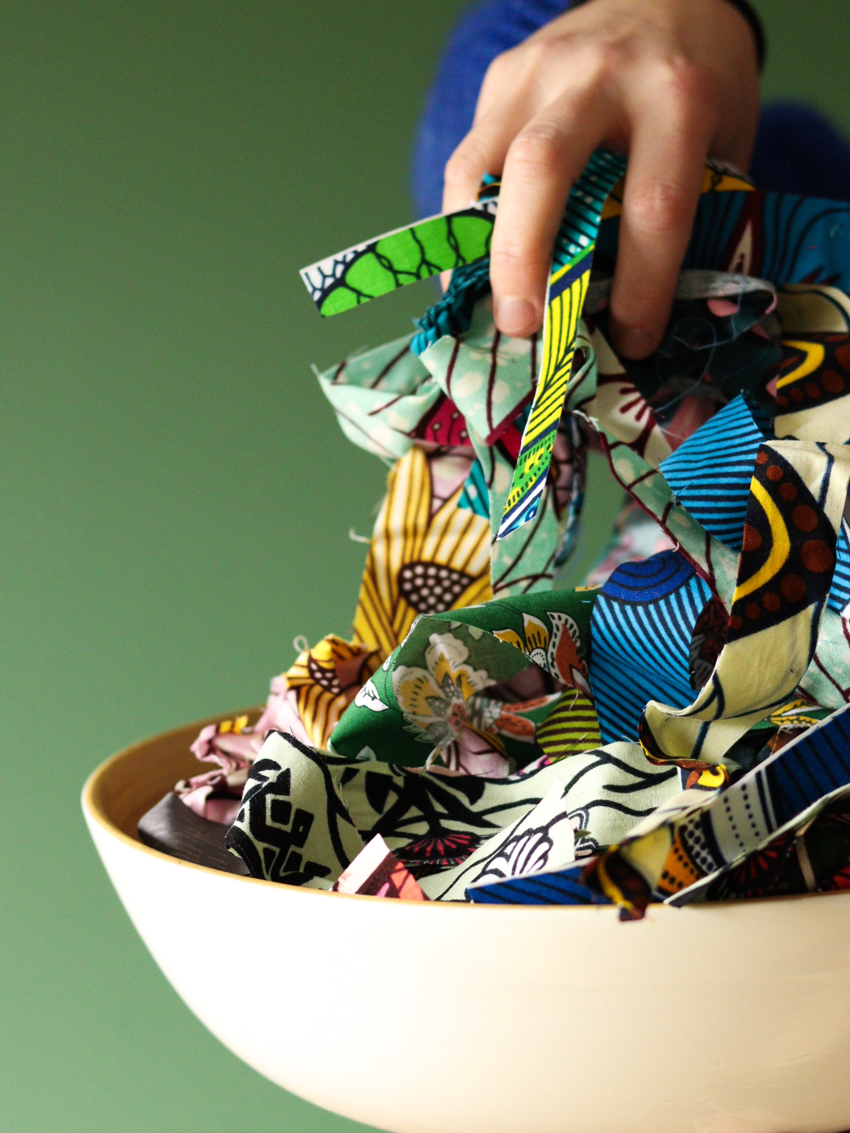 Lot de bandes fines de wax et autres tissus colorés.