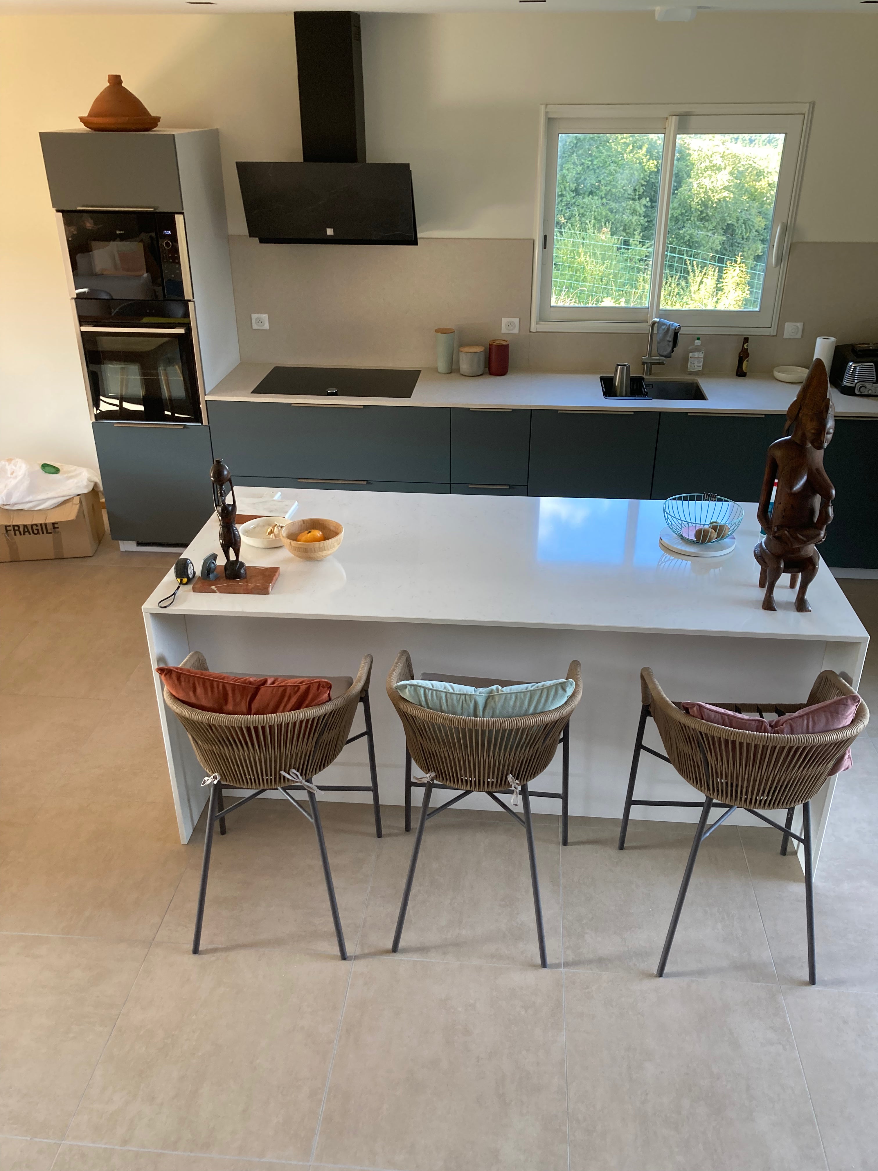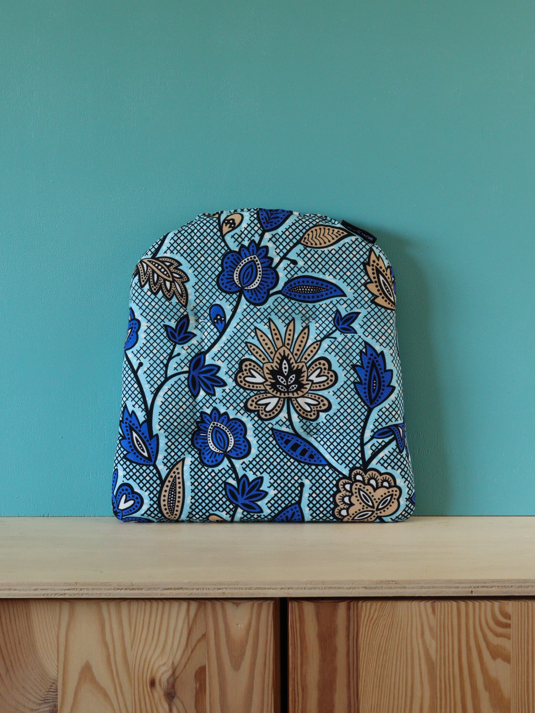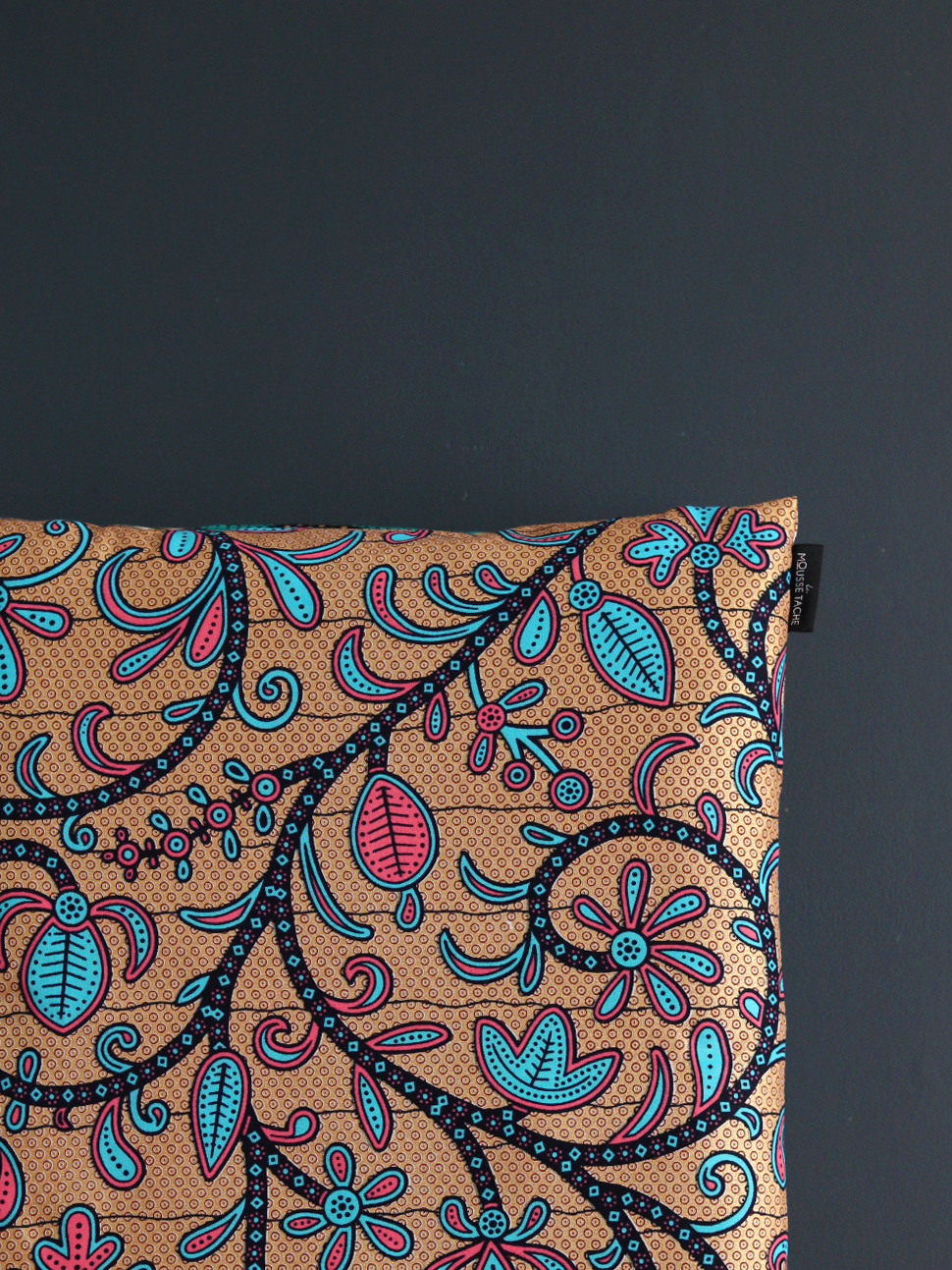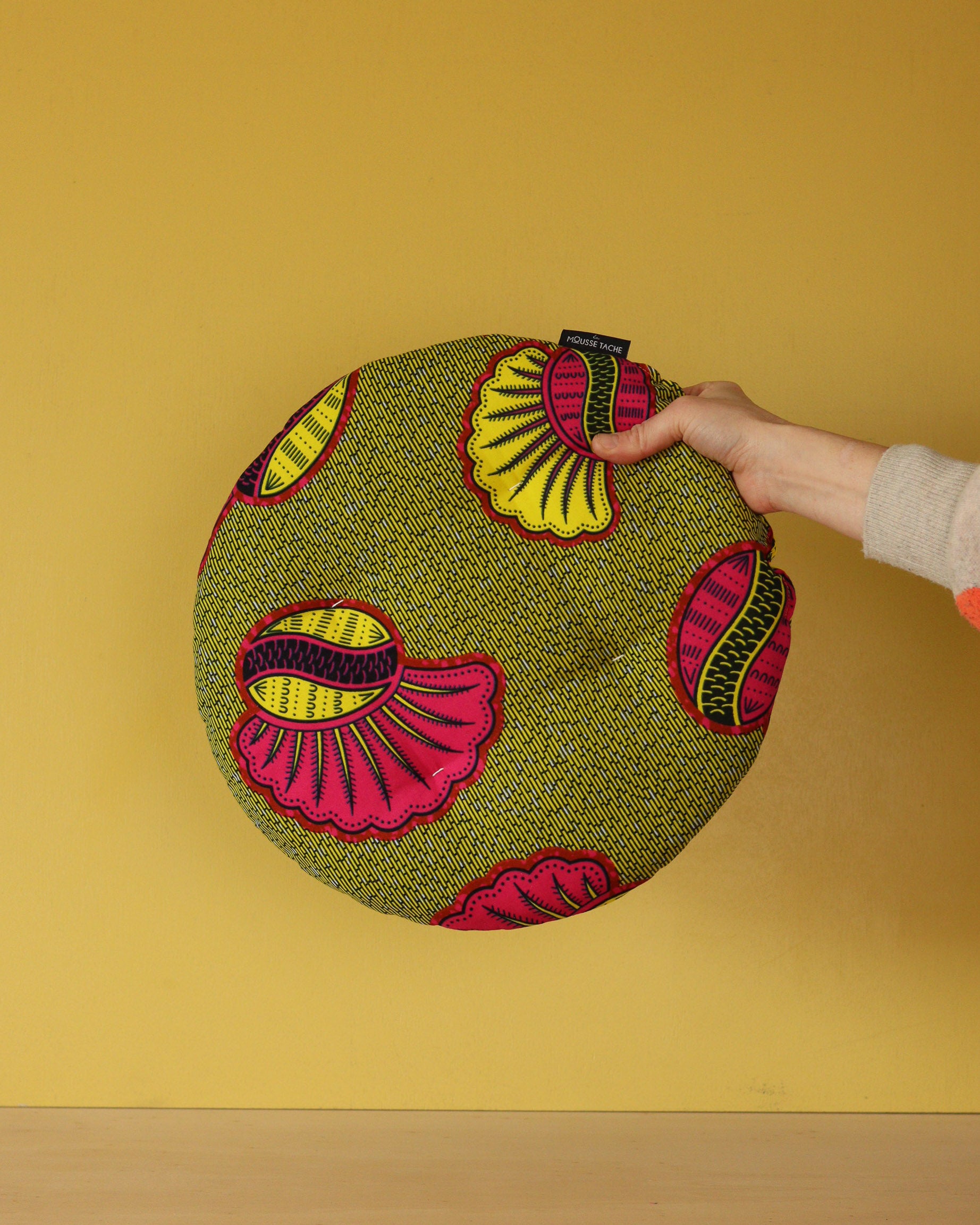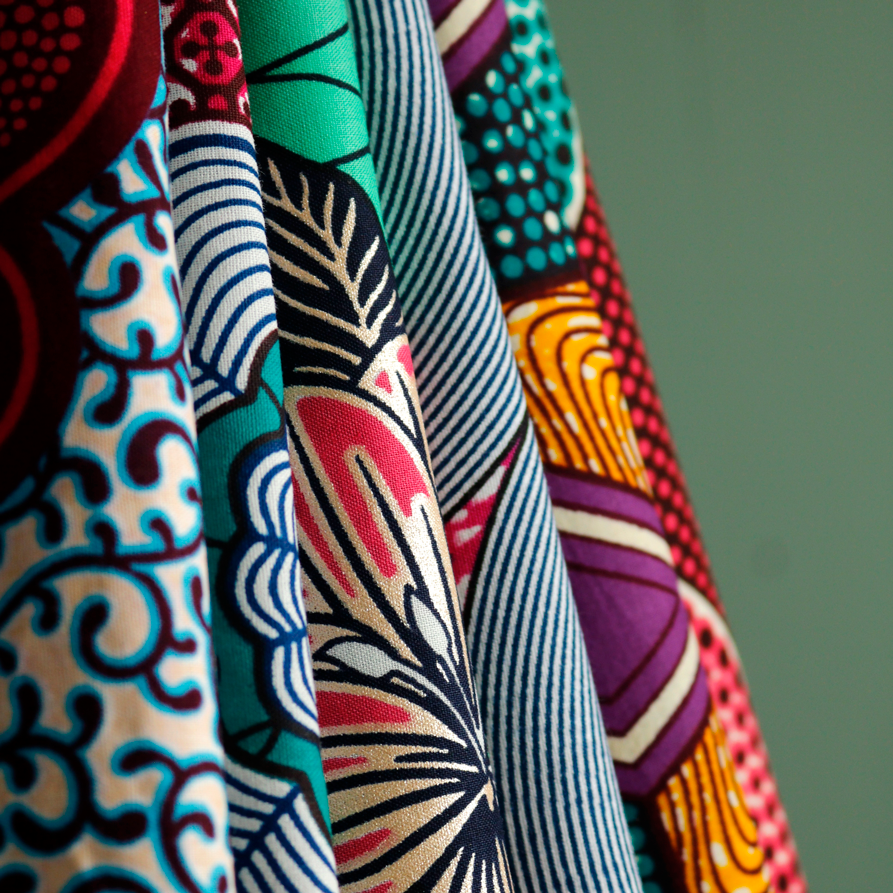 Afin d'apporter une touche colorée sur sa terrasse, Caroline m'a demandé de réaliser des housses de coussins en wax sur-mesure pour ses galettes de chaise existantes. Le mobilier de jardin et les murs ayant des teintes neutres, il n'y avait pas de contraintes de couleurs.