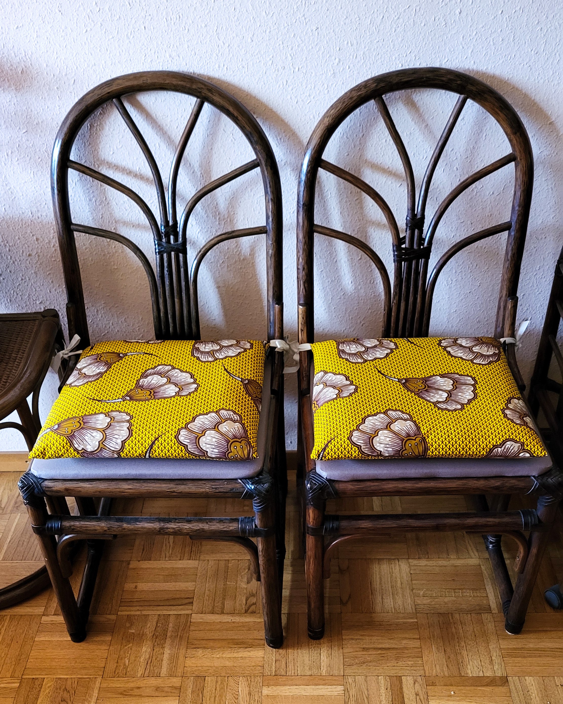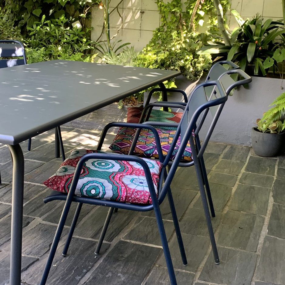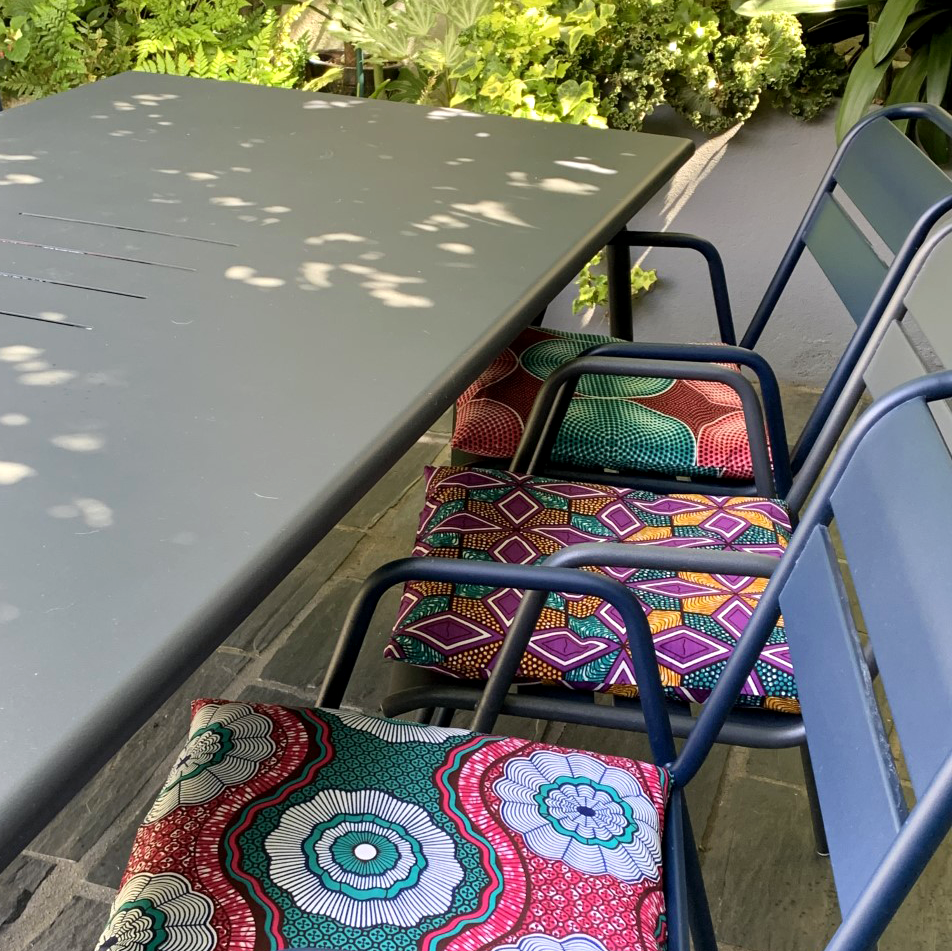 Housses de coussins de chaises de jardin sur-mesure en wax / La terrasse de Caroline
